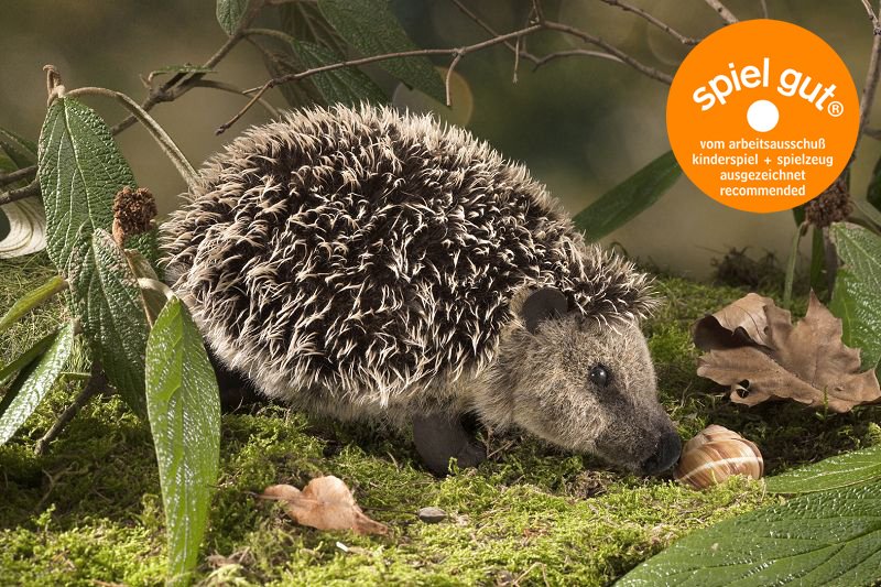 Handgearbeiteter Igel aus Plüsch. TÜV geprüft und Waschmaschinen geeignet bis 30°.