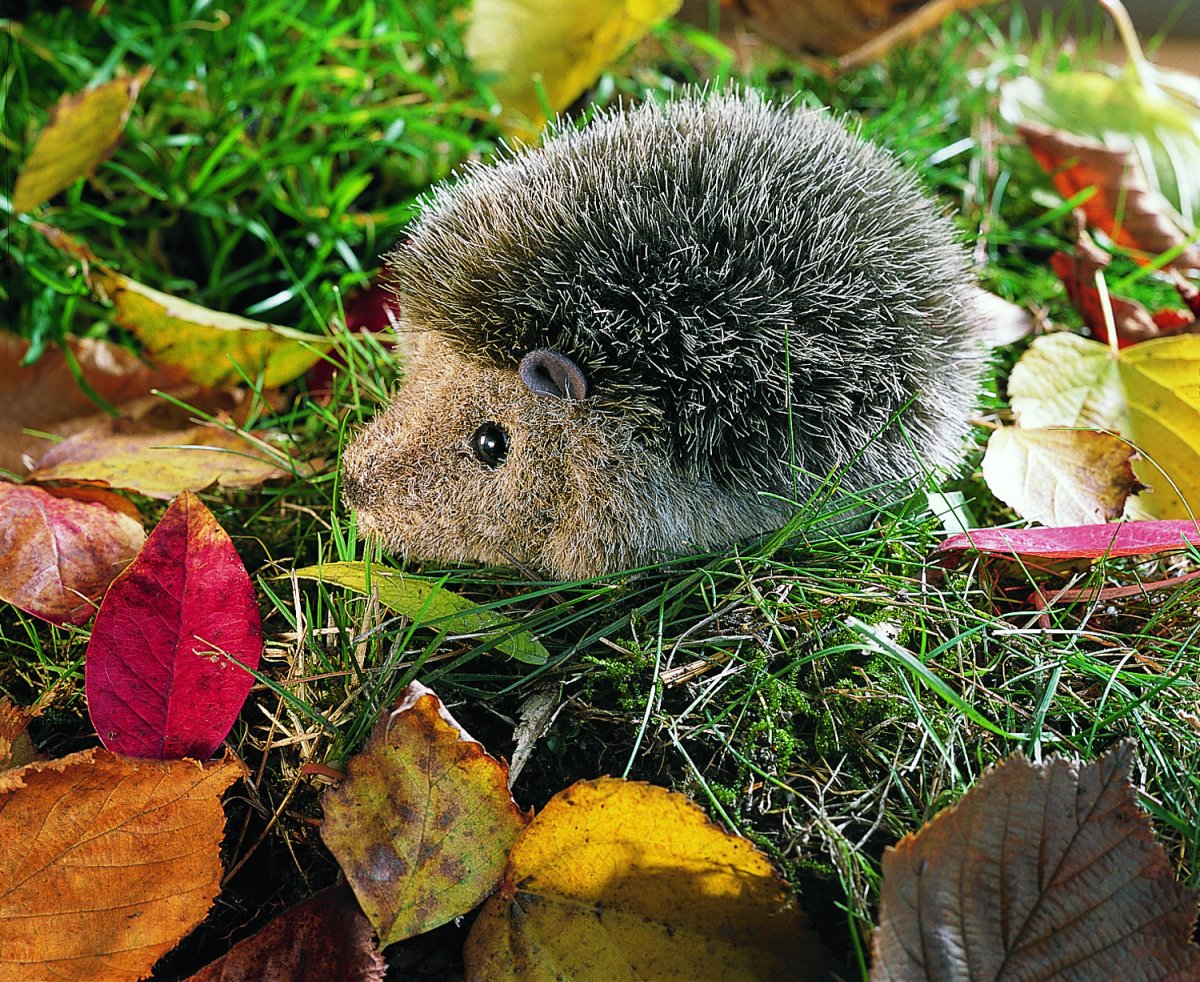 Handgearbeitetes Igelchen aus Plüsch. TÜV geprüft und Waschmaschinen geeignet bis 30°.