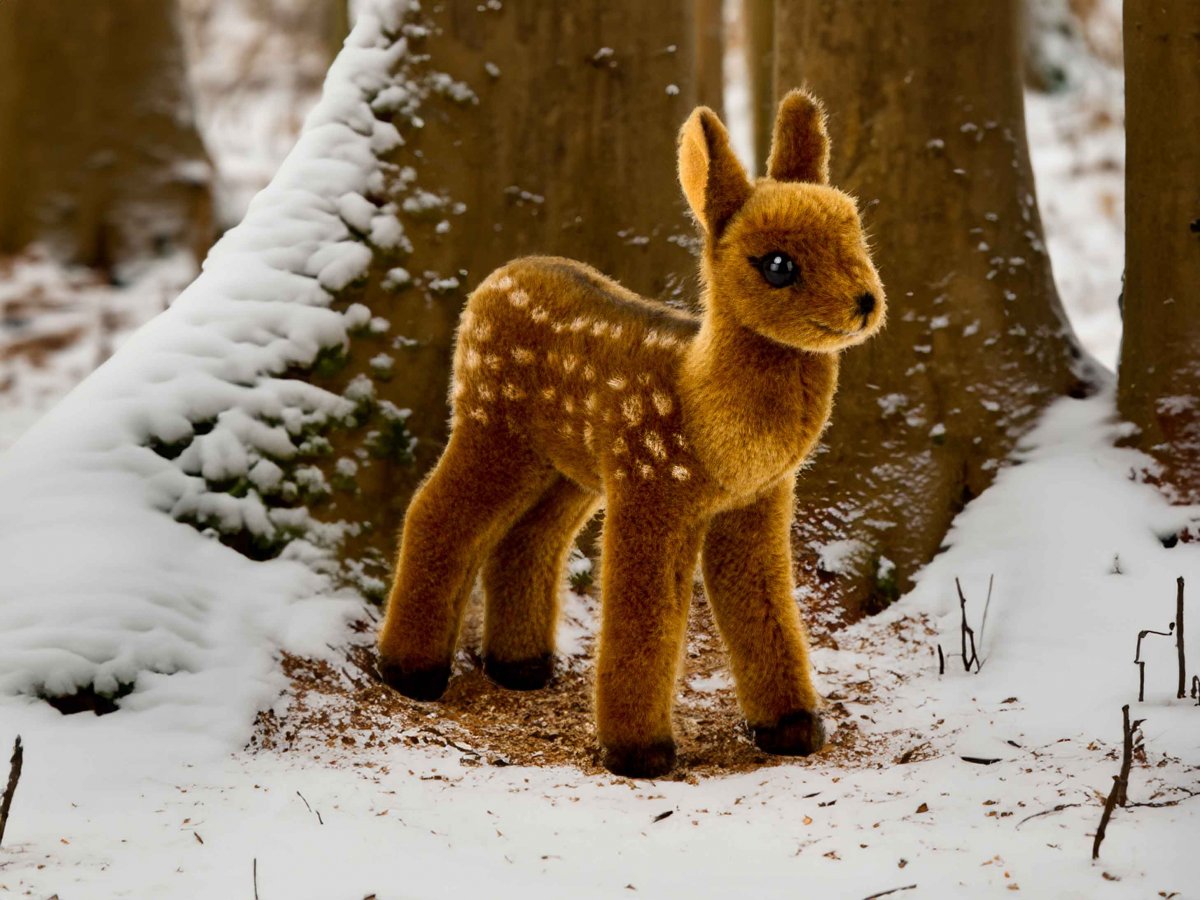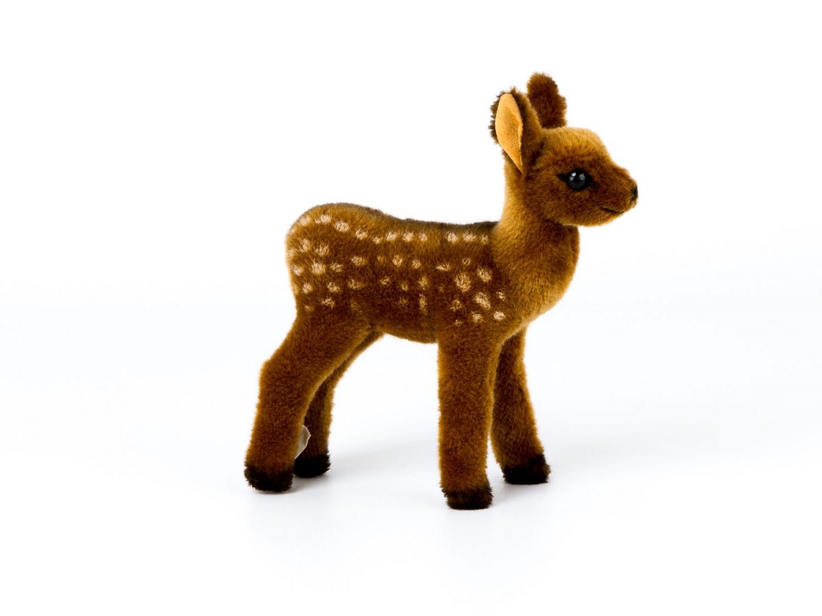 Handgearbeitetes Rehkitz aus Plüsch. TÜV geprüft und Waschmaschinen geeignet bis 30°.