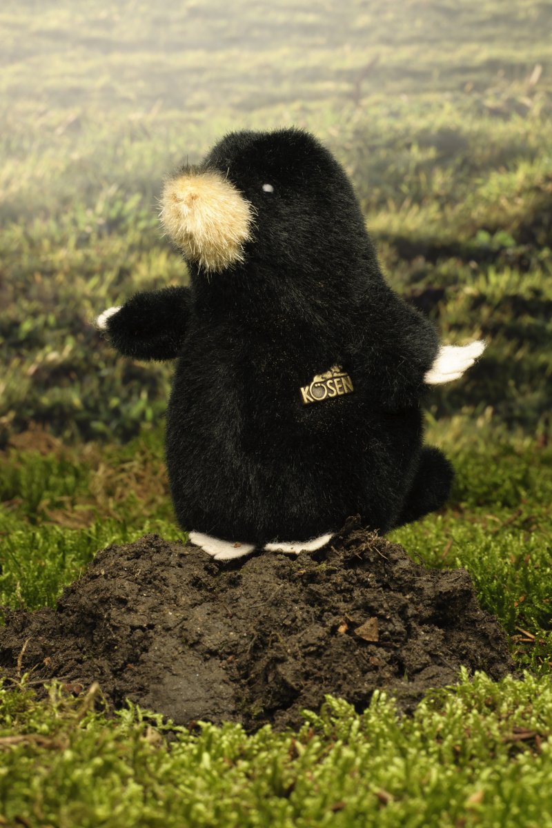 Handgearbeiteter Maulwurf aus Plüsch. TÜV geprüft und Waschmaschinen geeignet bis 30°.