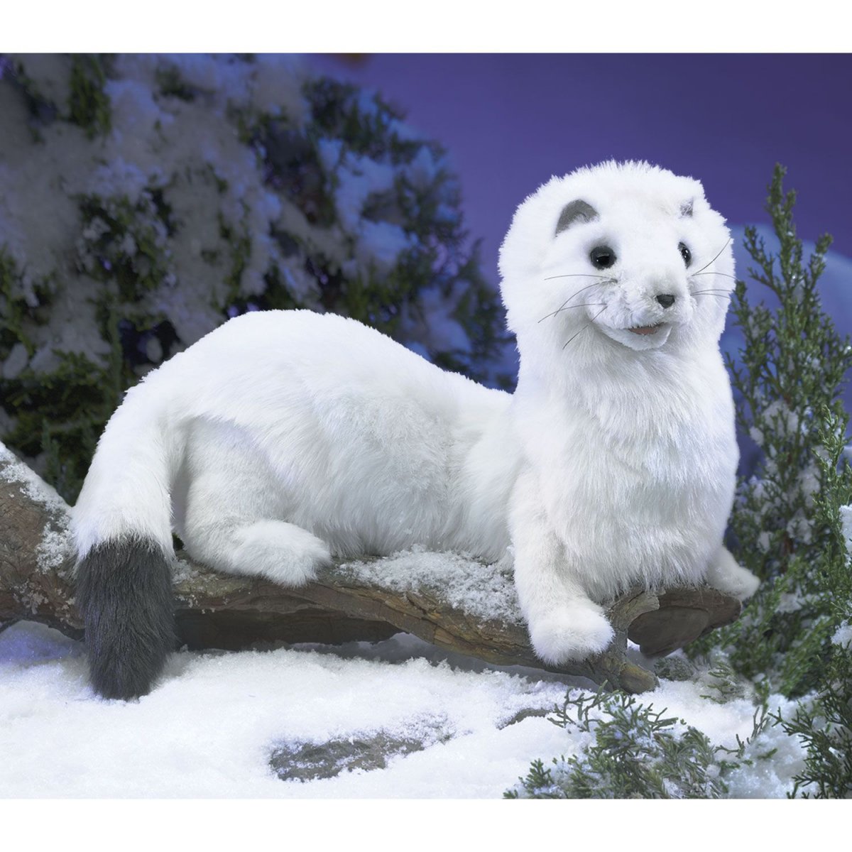Weiß wie frischer Schnee, mit schwarzen Schwanzspitze ist der Hermelin ein liebenswertes, wieselartiges Tier. Diese neugierige Kreatur, hat einen langen, geschmeidigen Körper, kohlschwarze Augen, ein bewegliches Maul und eine Hintertasche, mit der mittels beider Hände des Spielers, der ganzen Körpers bewegt werden kann.
