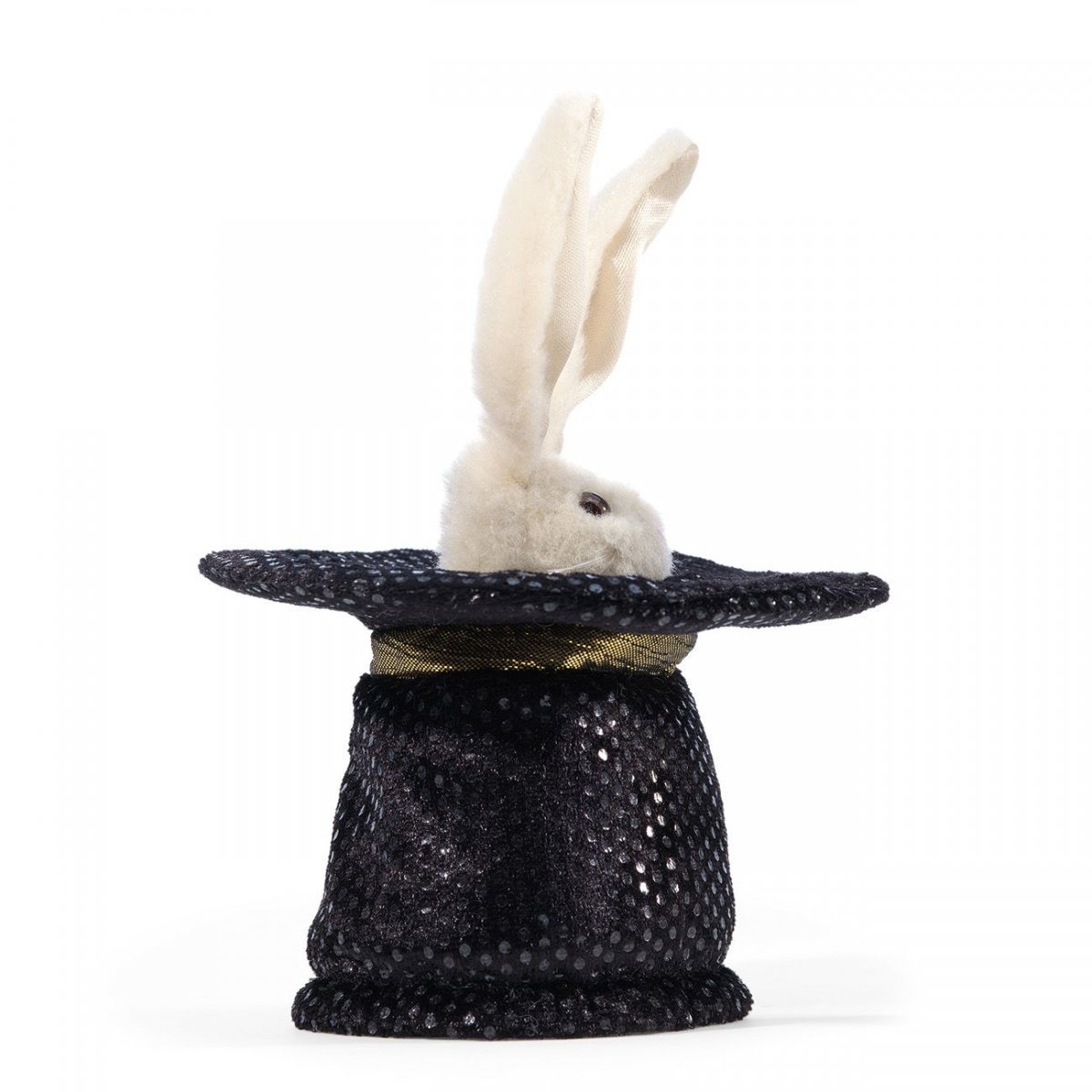Aus diesem funkelnden schwarzen Zauberhut springt ein weiches weißes Kaninchen hervor, um zu verzaubern und um jederzeit für großen Spaß zu sorgen.