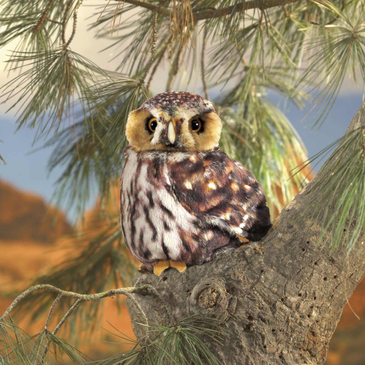 Klein, aber UHU: Eulen symbolisieren seit jeher die Weisheit! Das Käuzchen ist realistisch, lebensgroß, aus bedrucktem Plüsch. Mit stechenden Eulenaugen, wirkt es fast übernatürlich. Der Kopf lässt sich drehen!