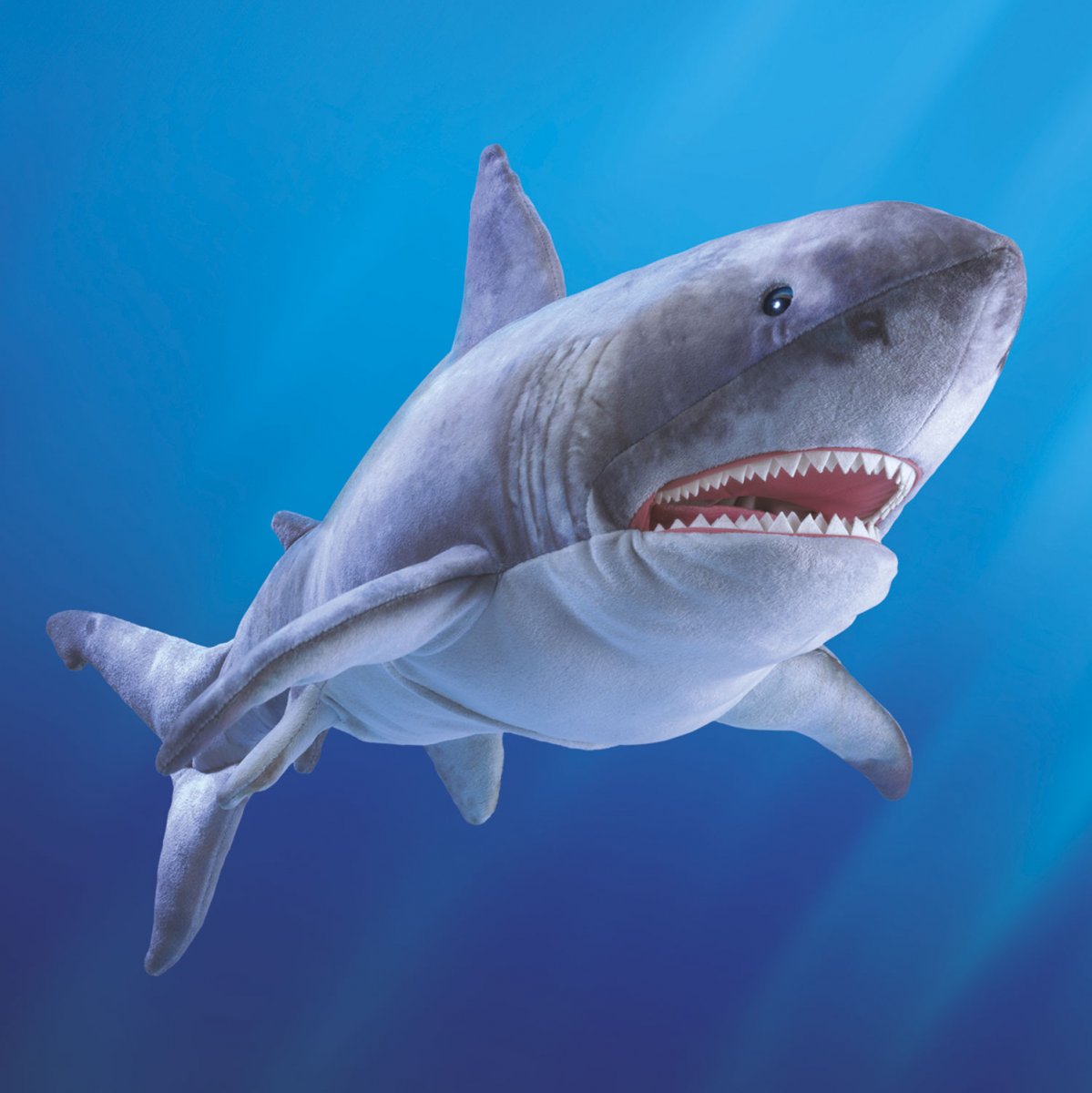 Lassen Sie sich von dem Weißen Hai faszinieren, mit seiner realistisch bedruckten Haifischhaut und seinem beweglichen Maul kann er andere Meeresbewohner leicht verschlucken.