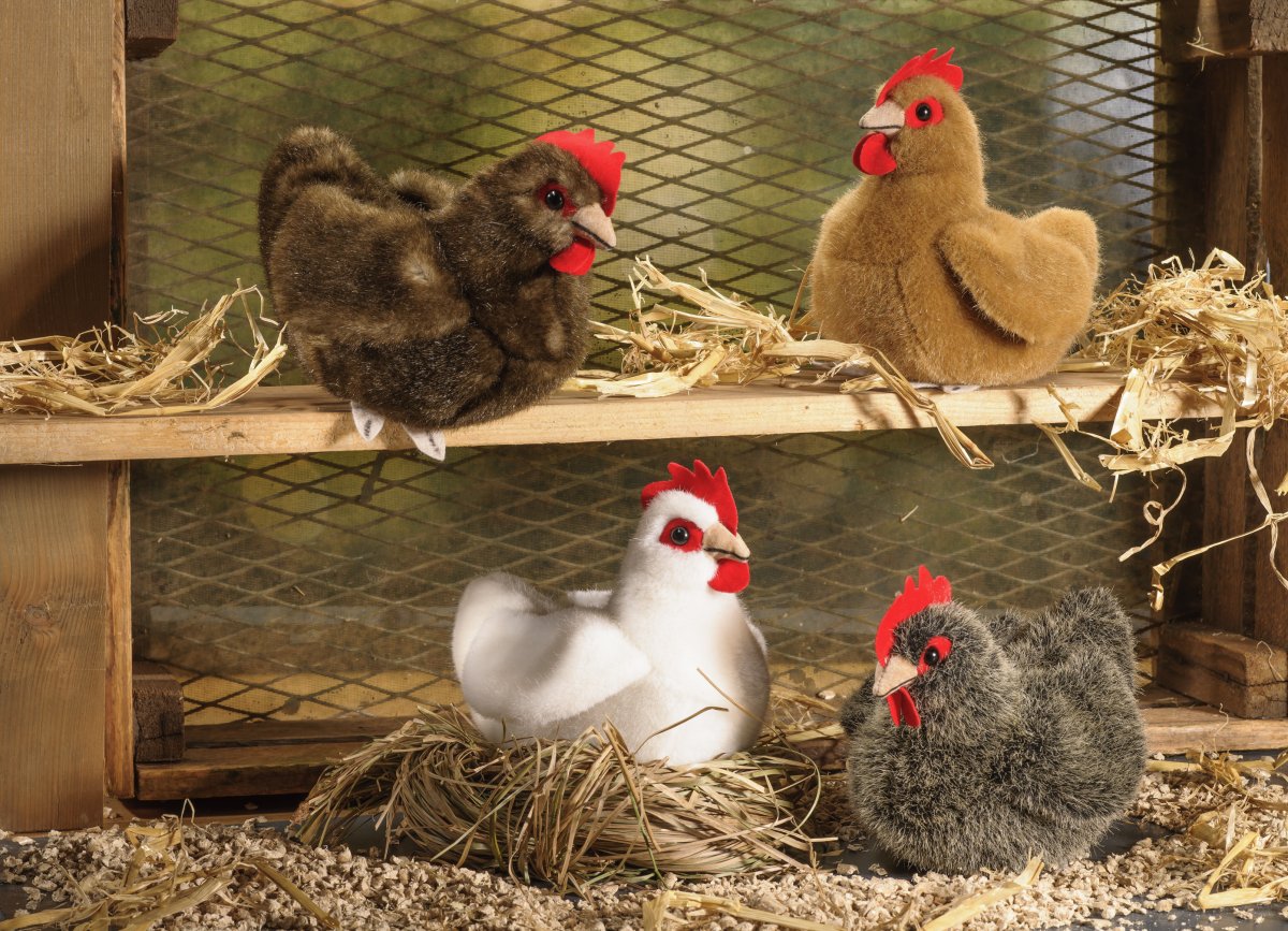Handgearbeitetes Huhn aus Plüsch. TÜV geprüft und Waschmaschinen geeignet bis 30°.