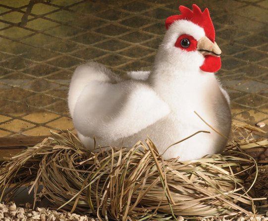 Handgearbeitetes Huhn aus Plüsch. TÜV geprüft und Waschmaschinen geeignet bis 30°.