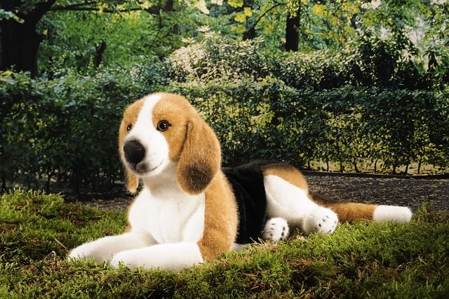 Handgearbeiteter Beagle aus Plüsch. TÜV geprüft und Waschmaschinen geeignet bis 30°.