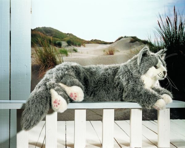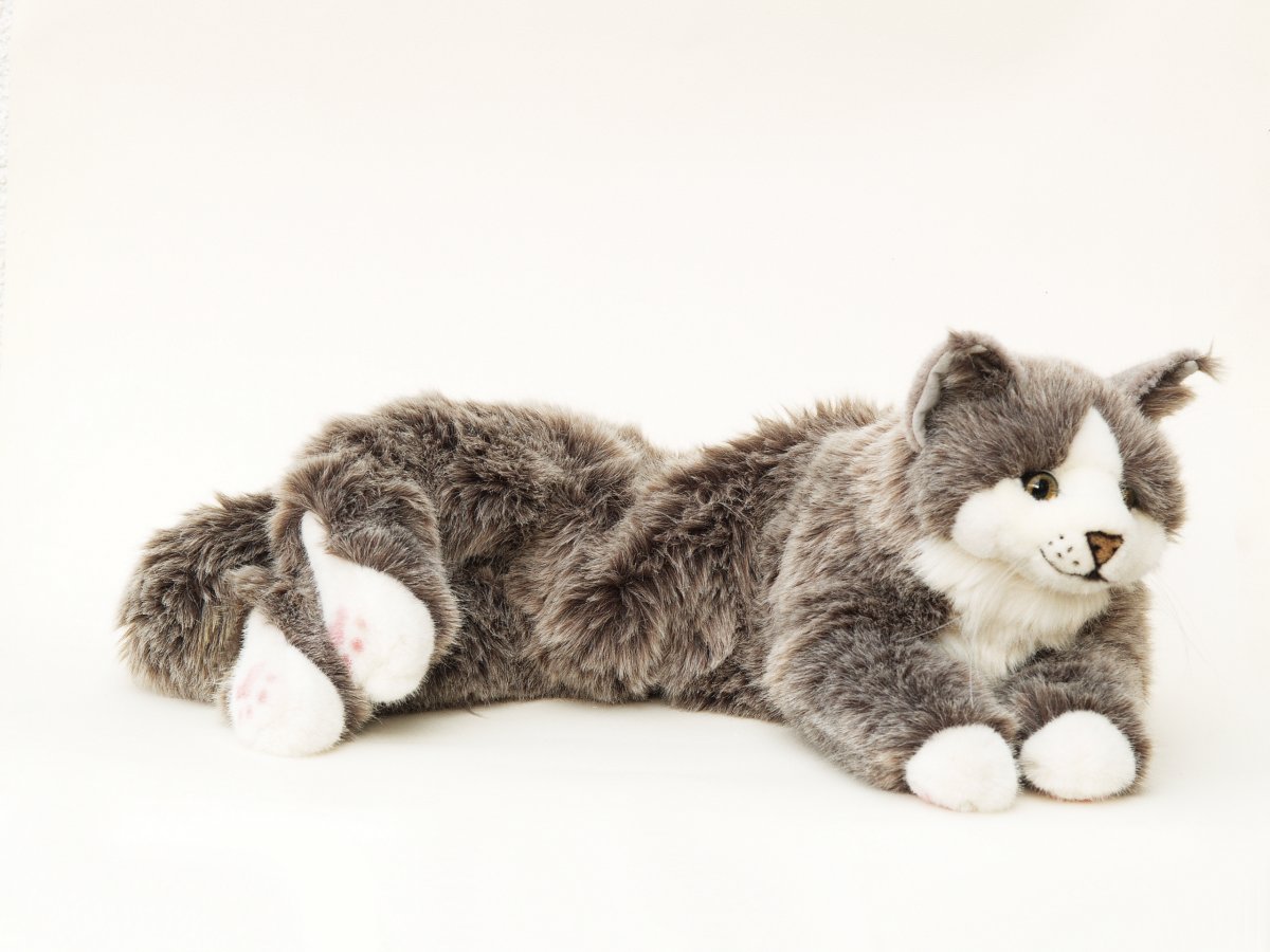 Handgearbeitete Katze aus Plüsch. TÜV geprüft und Waschmaschinen geeignet bis 30°.