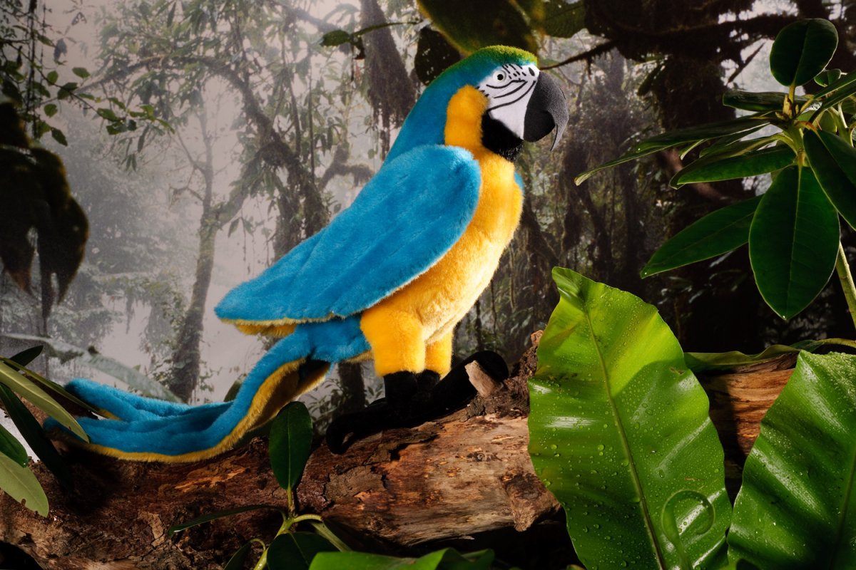 Handgearbeiteter Ara aus Plüsch. TÜV geprüft und Waschmaschinen geeignet bis 30°.