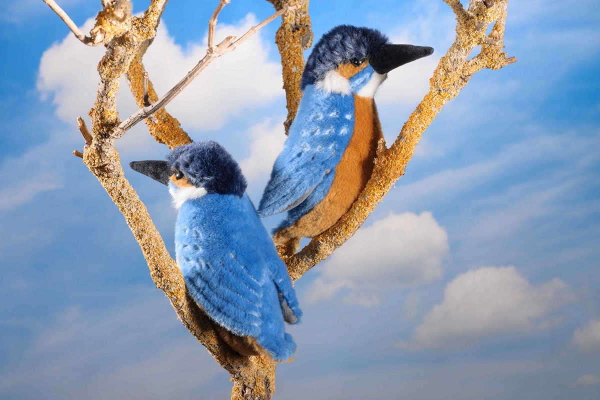 Handgearbeiteter Eisvogel aus Plüsch. TÜV geprüft und Waschmaschinen geeignet bis 30°.