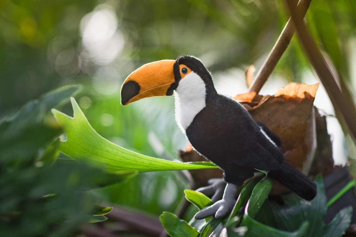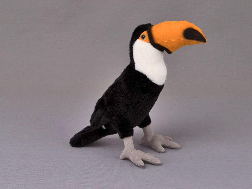 Handgearbeiteter Tukan aus Plüsch. TÜV geprüft und Waschmaschinen geeignet bis 30°.