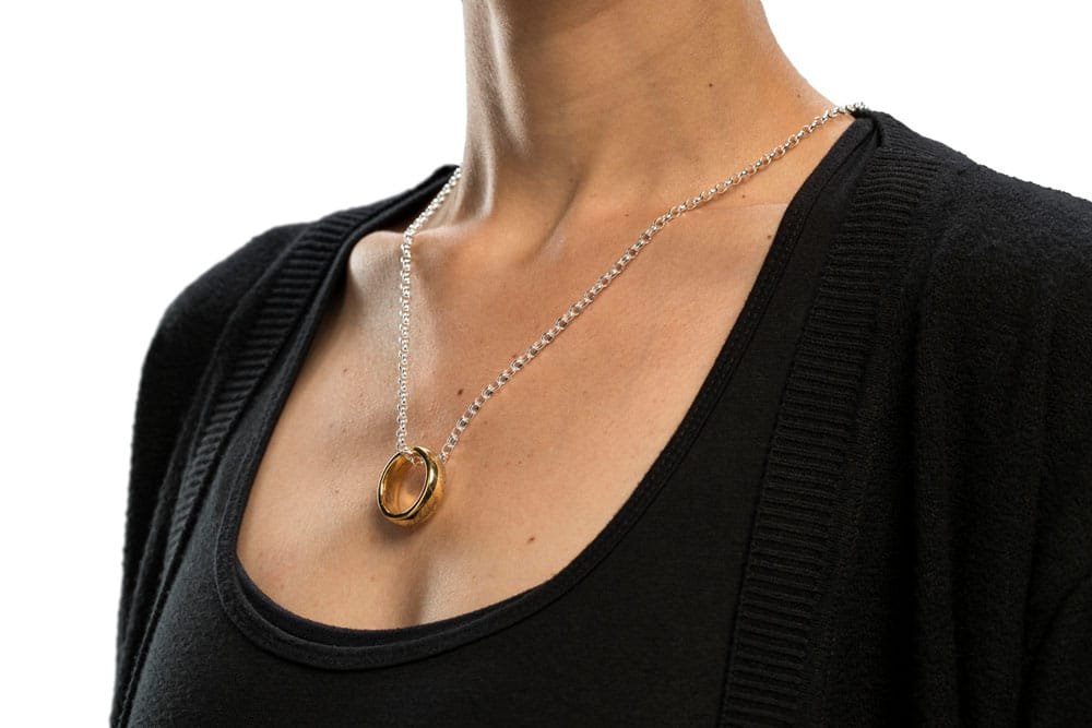 Der Ring aller Ringe aus 18 Karat vergoldetem Wolfram mit laser-geätzter Inschrift. Der Eine Ring im zeitlosen Design wird in einer schicken Schatulle aus Nussbaumholz gelief